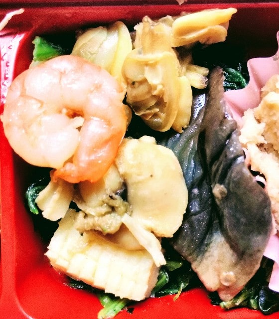 肉系メインディッシュの他に必ず魚介系も詰められています。
