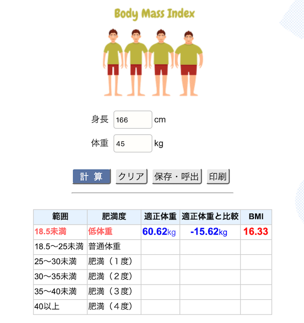 標準体重には程遠い痩せ型ではありますが、現在もBMI:16(身長166cm、体重45kg)で安定しています。