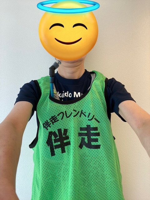 私はけっこう細身なので、ランニングベストを使うと、それが全面となり、伴走ビブスが目立たなくなります。そうすると、単なる横並びで走っている迷惑なランナーに見えてしまうかもしれません。